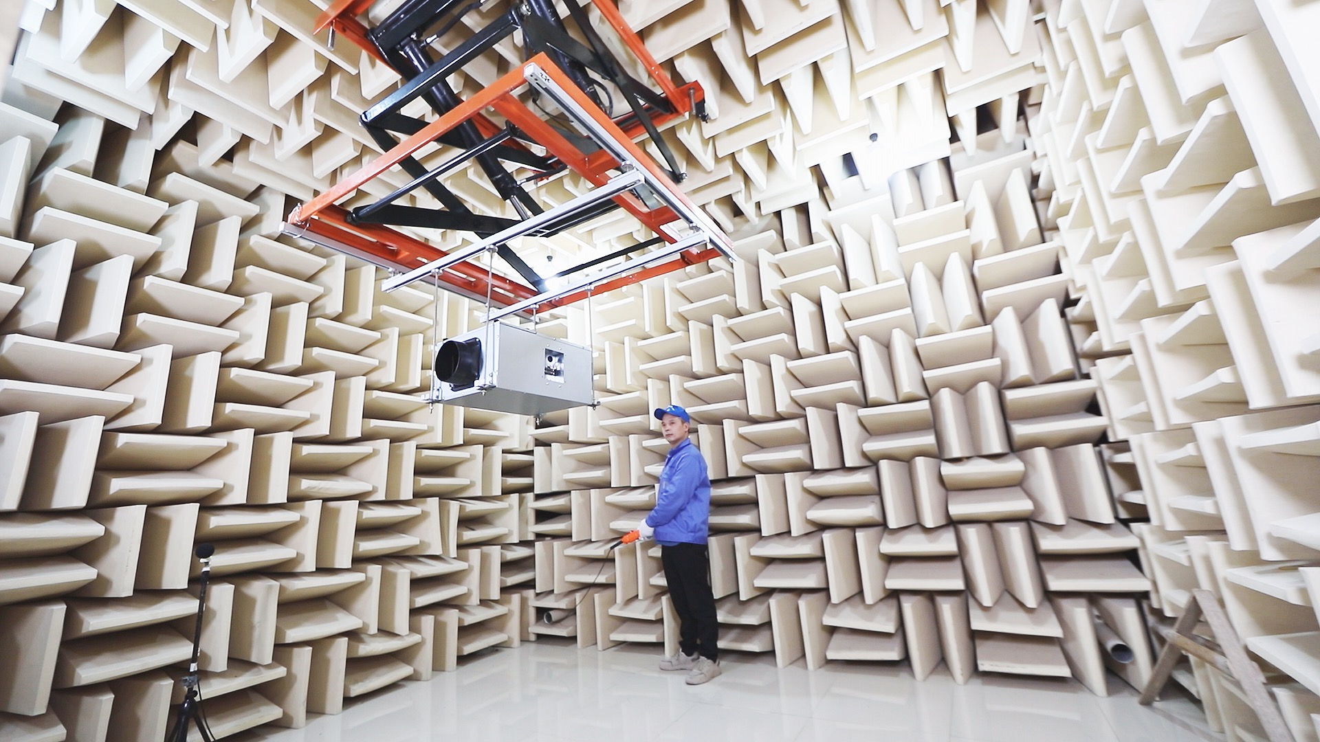 測試中心配有半消音室、B&K噪聲測量儀、B&K PULSE噪聲分析系統、穩壓電源和升降臺,可以測量通風機和空調設備的噪音以及頻譜。
