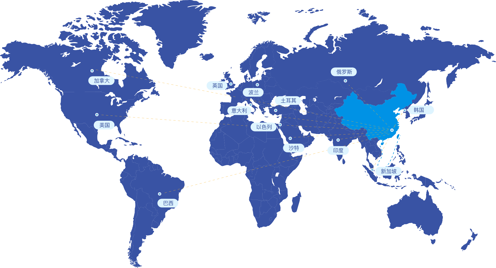 公司產品遠銷美國、加拿大、巴西、英國、波蘭、意大利、俄羅斯、韓國、泰國、新加坡、土耳其、印度、沙特、以色列等國家和地區。